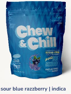 Relax Indica Blue Raz (1:1 THC:CBD + CBN) - Waterless Live Rosin, Fast Acting Gummies - 10 pieces (100mg)